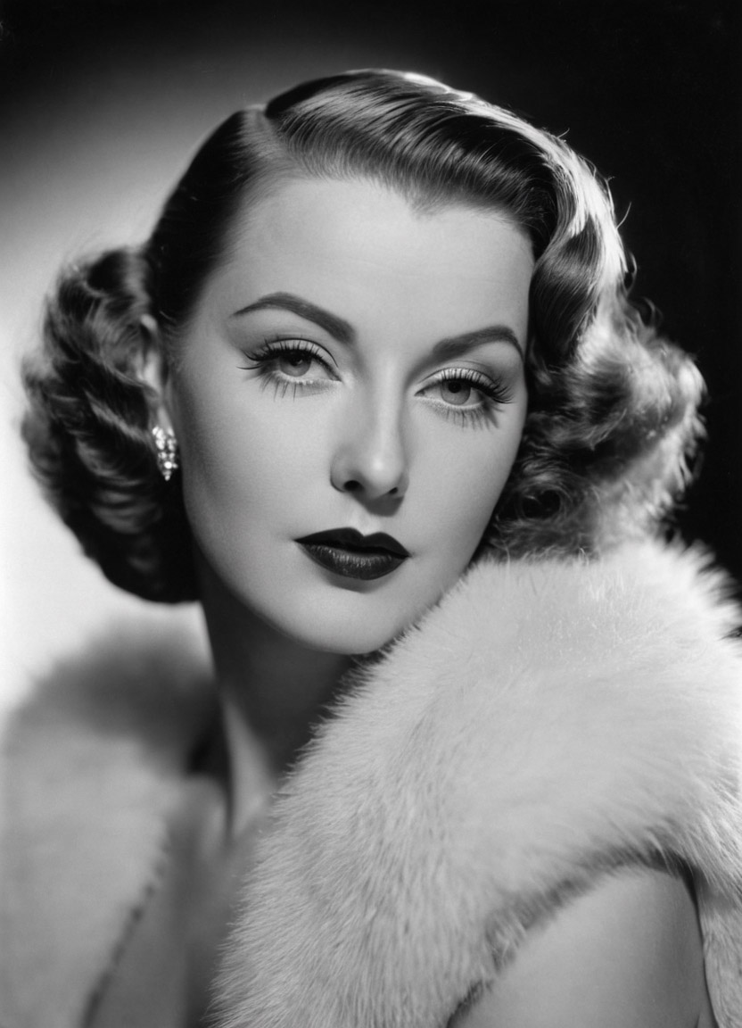 Initial prompts returned generic glamour shots with flat lighting and modern styling. I refined them by referencing specific lighting setups, historical figures, and vintage terminology (e.g., “cinematic studio lighting,” “1940s noir actress,” “soft diffusion lens”). Including lens types, film stocks, photographer and makeup references helped steer the output toward the desired era.